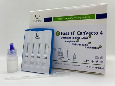 Der Fassisi® CanVecto 4 weist zuverlässig Dirofilaria immitis (Antigen), Anaplasma (Antikörper), Ehrlichia canis (Antikörper) und Leishmania (Antikörper) nach.